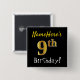 Bóton Quadrado 5.08cm Preto, Faux Dourado 9º aniversário, com nome perso