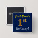Bóton Quadrado 5.08cm Primeiro aniversario Azul, Falso Dourado, Com Nome