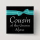 Este botão do casamento no preto, no branco e no aqua clássicos é uma escolha doce para alguns de seus eventos do casamento, incluindo seus ensaio do casamento e jantar de ensaio.  Personalize com o nome de sua pessoa especial da festa de casamento.
