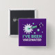 A tipografia que fui vacinada é branca e lacrimogênea em fundo roxo com motivo de vacinação.