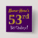 Bóton Quadrado 5.08cm Roxo, Faux Dourado 53º Aniversário, Com Nome Perso