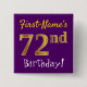 Bóton Quadrado 5.08cm Roxo, Faux Dourado 72º Aniversário, Com Nome Perso