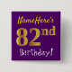 Bóton Quadrado 5.08cm Roxo, Faux Dourado 82º Aniversário, Com Nome Perso