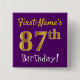 Bóton Quadrado 5.08cm Roxo, Faux Dourado 87.º Aniversário, Com Nome Pers
