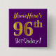 Bóton Quadrado 5.08cm Roxo, Faux Dourado 96º Aniversário, Com Nome Perso