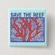 Design azul e alaranjado vívido de um desenho original do marcador do prismacolor pelo hoard-Dunn de Angela. Este botão mostra uma cena alegre do recife que seja colorida e lunática. Os lotes de peixes azuis felizes cercam um coral alaranjado brilhante e a mensagem é "economias o recife."