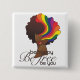 Mulher do afro-americano com cabelo natural. O cabelo tem o arco-íris que representa a bandeira do orgulho de LGBT. Debaixo da imagem da mulher são as palavras, "estejam felizes, estejam livres, sejam você".