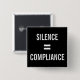 Bóton Quadrado 5.08cm SILÊNCIO = CUMPRIMENTO DO protesto político preto