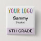 Our square student name button is easily personalizable with your school logo, student name, or other custom text. It attaches with a safety pin back. This affordable name tag is ideal for students (age 10 and up) on field trips, in classrooms, and other situations where quick identification of students is necessary. Designed in lilac purple and other colors (all colors are customizable). Our square buttons are 2 inch x 2 inch. Made in USA. No minimum order quantity and no setup fee.