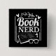 Um belo presente para o amante do livro. Botão de nerd simples de livro preto e branco. Um presente para qualquer ocasião para o amante do livro, membro do clube do livro ou bibliotecário.