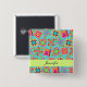 Desfrute de vestir um belo pino colorido para reuniões ou eventos de colcha. Esse crachá de nome de colcha também é excelente para que funcionários compres inspirem vendas de colcha. Os blocos colorido vibrantes estão sobre um fundo azul turquesa com uma tira de verde limão para adicionar seu nome ou outras informações. A arte quilt baseada na arte original apresenta blocos de colchetes favoritos e blocos únicos criados por Phyllis Dobbs em cores vibrantes e dinâmicas de cor laranja, amarelo, rosa fuchsia, turquesa e verde limão para uma bela paleta de cores. Mostre o seu amor por colchar com estas designs de arte. Totalmente personalizável. A arte quilt é uma arte original da designer de tecidos e mantas Phyllis Dobbs e está em uma coleção de tecidos da Quilting Treasures. Esta arte está disponível em outros produtos e em vários planos coloridos. Há mais produtos disponíveis na loja Business da Phyllis com Flair. Este pino de crachá de nome é totalmente personalizável
