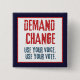 Justiça social / protesto / botão de remodelação com "Mudança de Demanda" vermelho e azul. Use Sua Voz. Usar o texto da sua voz"