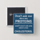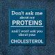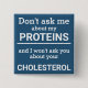 Este botão de diversão minimalista, com a frase "Não me perguntes sobre as minhas proteínas e não te perguntarei sobre o teu colesterol" em letras negras num fundo azul, é o presente perfeito para todos os veganos. Para pedidos personalizados, queira contactar-me em zolicestore@hotmail.com (permitir 1-2 dias úteis)
