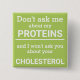 Este botão de diversão minimalista, com a frase "Não me perguntes sobre as minhas proteínas e não te perguntarei sobre o teu colesterol" em letras brancas num fundo verde claro, é o presente perfeito para cada vegano. Para pedidos personalizados, queira contactar-me em zolicestore@hotmail.com (permitir 1-2 dias úteis)
