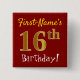 Bóton Quadrado 5.08cm Vermelho, Faux Dourado 16º aniversário, com nome p