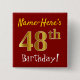 Bóton Quadrado 5.08cm Vermelho, Faux Dourado 48º aniversário, com nome p