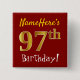 Bóton Quadrado 5.08cm Vermelho, Faux Dourado 97º aniversário, com nome p