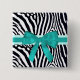 Bóton Quadrado 5.08cm Zebra Stripes com Fita Azul e Padrão do arco