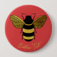 BÓTON REDONDO 10.16CM ABELHA DE TEXTO PERSONALIZADA DE BEBÊ NEGRA DOURAD