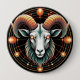 Uma trabalho de arte intricadamente projetada mostrando um carneiro cercado por órbitas brilhantes e padrões cósmicos, refletindo misticismo e beleza celeste. Perfeito para adicionar um toque cósmico artístico a projetos criativos.