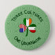 O pin personalizado apresenta as bandeiras da Itália, Irlanda e Estados Unidos da América (EUA). As bandeiras são encontradas nas folhas desta shamrock, projetada para celebrar Ruas. Dia de Patrick, 4 de julho e feriados italianos. Ela se senta sobre um fundo de quadrados verdes claros e brilhantes. Acima estão as palavras TRÊS CULTURAS. Abaixo, UM NOME. As palavras estão em verde escuro, estilo Celta, letras circulares. Adicione o seu nome no local apropriado para uma aparência personalizada. Precisa de um presente? Apenas adicione o nome de outra pessoa.