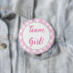Garota de Equipe, Botão de Revolução de Gênero, Botão Rosa O que você acha? Team Boy ou Team Girl? Deixem seus convidados mostrarem o melhor convidado com o Botão Garota da Equipe. O botão Team Boy também está disponível em uma lista separada. Melhor ainda, depois que o bebê for nascer seus visitantes podem vestir esses botões para visitá-lo no hospital.