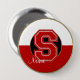 Bóton Redondo 10.16cm Botão Monograma da Escola, Letra Vermelha-Branca S