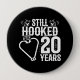 Esta design divertida de 20 de aniversário de casamento é perfeita para casais de pesca que estão casados há 20 anos e ainda estão viciados um no outro e adoram ir pescar! Excelente para uma festa de aniversário de casamento para celebrar 20 anos de casamento! Apresenta a citação de aniversário de casamento "Ainda viciado Após 20 Anos" com ganchos de peixe em forma de coração com gráfico de pesca em um design de estilo de vintage angustiado.