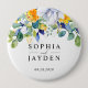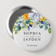 Bóton Redondo 10.16cm Casamento azul-branco floral elegante