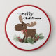 Este alce branco é adorável com um arco de fita vermelha amarrado em seu pescoço. Ele está entre pinheiros e bagas. O texto acima diz "Feliz ChrisMoose". Este é um pino tão divertido para vestir durante o feriado! As crianças também vão adorar. Disponível em vários tamanhos.