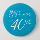 Elegante Pino do Botão do aniversário de 40 anos do Monograma Azul Aqua Este Elegante Pino do Botão do aniversário de 40 anos Azul Aqua fará o pino do botão perfeito para o aniversário do seu amigo ou familiar. Você pode personalizar a idade para qualquer aniversário que quiser. Pino perfeito para o convidado de honra ou para os convidados vestirem na festa de aniversário! Compre na nossa loja para uma variedade de cores de pinos do botão de aniversário!