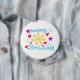 Huge , 4 inch, Round, Button, with a Happy Birthday!,Drawing, and Design ,= ( of the Sun and Clouds, and Hearts and Stars)= ( Drawing, and Design , by P.J.M.).= With the White Background removed.= and the color White , added to all of the Background.