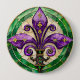 Bóton Redondo 10.16cm Mardi Gras StainGlass Fleur de lis