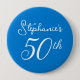 Bóton Redondo 10.16cm Monograma Azul Elegante 50ª Festa de aniversário