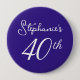 Pino do botão do aniversário de 40 anos de monograma roxo elegante Este pino de botão de aniversário de 40 anos do monograma roxo elegante fará o pino do botão perfeito para o aniversário do seu amigo ou membro da família. Você pode personalizar a idade para qualquer aniversário que quiser. Pino perfeito para o convidado de honra ou para os convidados vestirem na festa de aniversário! Compre na nossa loja para uma variedade de cores de pinos do botão de aniversário!