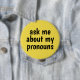 Bóton Redondo 10.16cm pergunte-me sobre meu fundo amarelo dos pronomes
