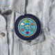 Botão de Passagem Feliz com os desejos de texto "Passover Feliz" & " KOSHER", Passover - Pesach - em hebraico, quadro floral Vintage, Prata de Passagem tradicional judaica para cerimônia de Seder, placa de pescada. Placa de Seder de Passover com Ilustração de Seis Símbolos. Acessórios > Botões e patches > Botões. Design com modelo de texto. Personalize-os adicionando nome ou texto de desejos.