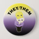 Um cone de sorvete super kawaii em cores de sinalizador de Pride Não-Binário. Amarelo limão, branco de baunilha e sorvete roxo Lavanda em um cone preto de Licorice. Uma sobremesa saborosa para o mês quente do orgulho de verão! Os pronomes são personalizáveis! Mude-os para o que quer que sejam os seus pronomes preferidos.