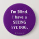 Este botão de 3 ou 4 polegadas é excelente de levar seu cachorro de serviço necessário para lojas que normalmente não permitem animais de estimação. O texto branco sobre fundo roxo para baixa visão facilita a leitura. Este botão Ver Cachorro Olho pode alertar outros de que seu cachorro não é um animal de estimação, mas está a serviço do dono.