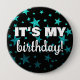 Bóton Redondo 10.16cm Turquesa Glitter Stars Confetti É o meu aniversári