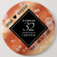Celebre o 32º aniversário de casamento em bronze com este botão de na moda! As letras esbeltas, pretas e brancas, com um confete hexagonal sobre fundo de folha de bronze, acrescentam um toque memorável para esta ocasião especial e marco extraordinário. Personalize com os nomes do casal e as datas do casamento. Design © W.H. Sim. Mais informações em zazzle.com/expressionsoccasions