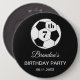 7th Birthday party for a soccer fan, sports, kids, boys, for him. Black and white, modern, elegant Birthday party button. Please personalize it with your details.