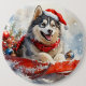 Bóton Redondo 15.24cm Alaskan Malamute em Sledge Deixe-o nevar no Natal
