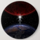 Alienígena de cinzas mostrada entre a Terra e um planeta como Marte.