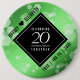Celebre o aniversário de casamento da 20 emerald com este botão de na moda! A legante inscrição a preto e branco com confete hexagonal em um fundo verde esmeralda adiciona um toque memorável para esta ocasião especial e marco extraordinário. Personalize com os nomes do casal e as datas do casamento. Design © W.H. Sim. Mais informações em zazzle.com/expressionsoccasions