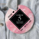 Celebre o aniversário de casamento do quartzo 5 com este botão na moda! As letras esbeltas, em preto e branco, com um confete hexagonal em um fundo rosa rico, acrescentam um toque memorável para esta ocasião especial e marco. Personalize com os nomes do casal e as datas do casamento. Design © W.H. Sim. Mais informações em zazzle.com/expressionsoccasions