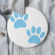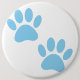 A pata do cão de desenho impresso em azul-bebê sobre fundo branco. Botões decorativos. Ideia de presente para amantes de cães.