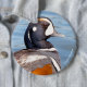Mostre o seu amor pela natureza com este botão de pinback com o tema da vida selvagem que mostra um pato adulto do Harlequin em toda sua prole reprodutiva. Uma de uma dúzia de Patos Harlequin que tive a sorte de me encontrar na praia, e o meu encontro mais próximo com estes patos-marinhos mergulhadores. Curiosamente, todos eram adultos do sexo masculino, perto ou em cheio, criando uma plumagem e exibindo suas cinzas de ardósia, brancas e ricas penas de canela, mas não havia senhoras da sua própria espécie para impressionar. Fotografado no primeiro dia de cheio de 2017. Baseado na fotografia original de W.H. Sim. Todos os Direitos Reservados. Mais informações em zazzle.com/walkswithnature