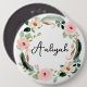 Bóton Redondo 15.24cm Belo nome personalizado Monograma Floral Wreath