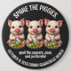 Comemora o vegetarianismo no mês de outubro (Mês da Consciência Vegetariana) com esse botão, que apresenta um belo trio de pigmeus gerados pela IA desfrutando de suas saladas, acompanhado pelo slogan humorístico, "Poupa os Porcos. Mata os pimentos, ervilhas e puntarelle!" (e, em impressão mais fino, "Outubro é Mês de Sensibilização Vegetariana"). Este design pode também ser adaptado para os dias vegetarianos, as segundas-feiras sem carne (ou terças-feiras sem carne), o dia vegetariano mundial (1 de outubro), o dia vegetariano mundial (1 de novembro), o dia vegetariano internacional (25 de novembro) e o dia mundial do porco (1 de março). Design © W.H. Sim. Mais informações em zazzle.com/word2art